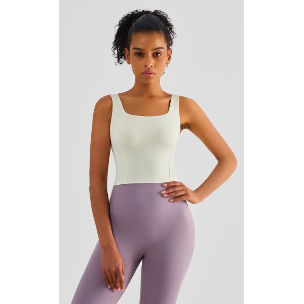 Square collar Workout Tank Tops For Women Athletic Yoga Bra Built In Fixed Cups Images |